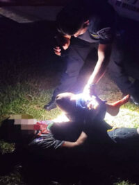 Testigos señalaron que el sujeto, en medio de la agresión, golpeó y pateó las vidrieras del establecimiento, provocando importantes daños. En el transcurso del ataque, el hombre sufrió un corte en la pierna izquierda al romper uno de los cristales, lo que obligó a la asistencia inmediata de personal de salud, quienes le realizaron las curaciones correspondientes.