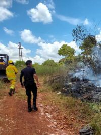 Simultáneamente, los bomberos voluntarios trabajaron en la sofocación de las llamas y en el aseguramiento del área, logrando controlar el foco ígneo antes de que se expandiera y causara daños mayores.