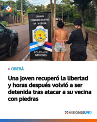 MISIONES.UNO | En el barrio Gunther, una mujer de 25 años fue arrestada nuevamente por el Comando Centro luego de protagonizar disturbios y agredir a su vecina, causándole una lesión en el rostro.